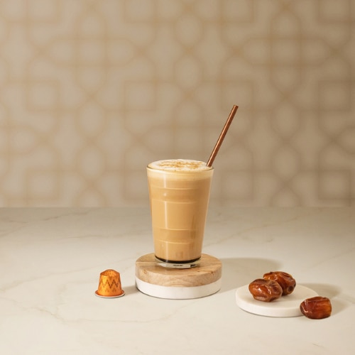 PREPARATION- ADD THE WHITE CHOCOLATE, THE CONDENSED MILK, THE COLD MILK AND 3 ICE CUBES INTO THE NESPRESSO AEROCCINO OR THE NESPRESSO BARISTA DEVICE. CLOSE THE LID, SELECT THE «LATTE MACCHIATO» RECIPE ON THE DEVICE AND PRESS THE START BUTTON.