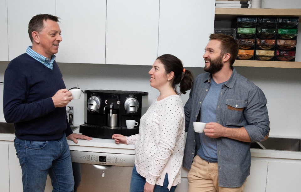 The team loves knowing their morning cup of coffee is enclosed in aluminium, aluminium as a material can be repeatedly recycled without losing its properties – and there’s also plenty of debate about which of the 13 Nespresso Professional Coffee blends make the tastiest coffee.