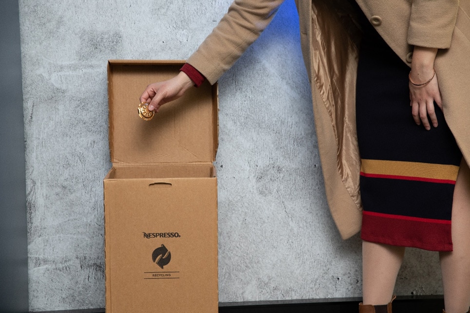 Dashing recycles its used Nespresso Professional coffee capsules in a Bulk Recycling Box through the Nespresso Recycling Program