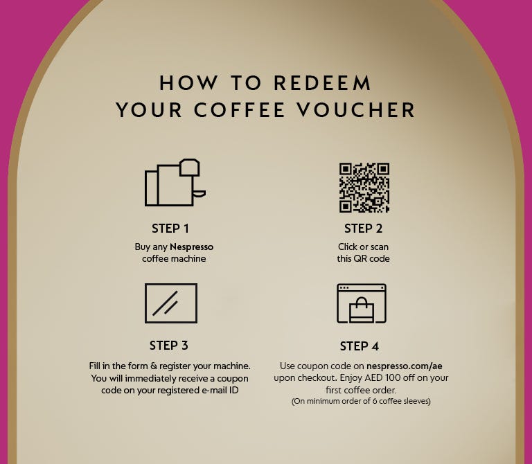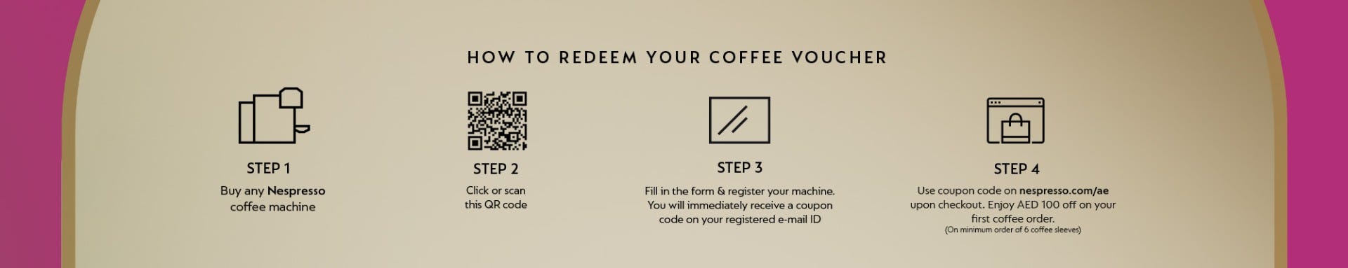 - A Nespresso member account is required to redeem the offer on www.nespresso.com/ae or Nespresso mobile app.