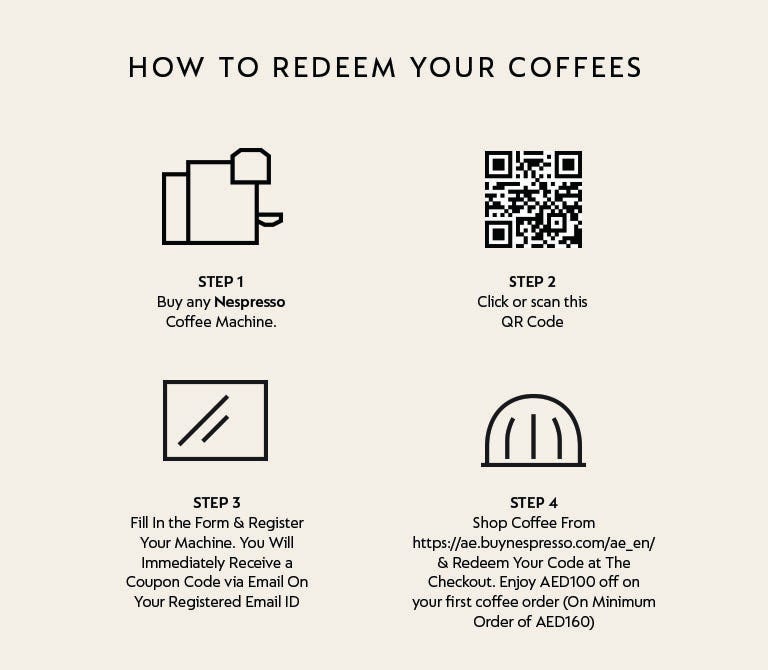 - A Nespresso member account is required to redeem the offer on www.nespresso.com/ae or Nespresso mobile app.