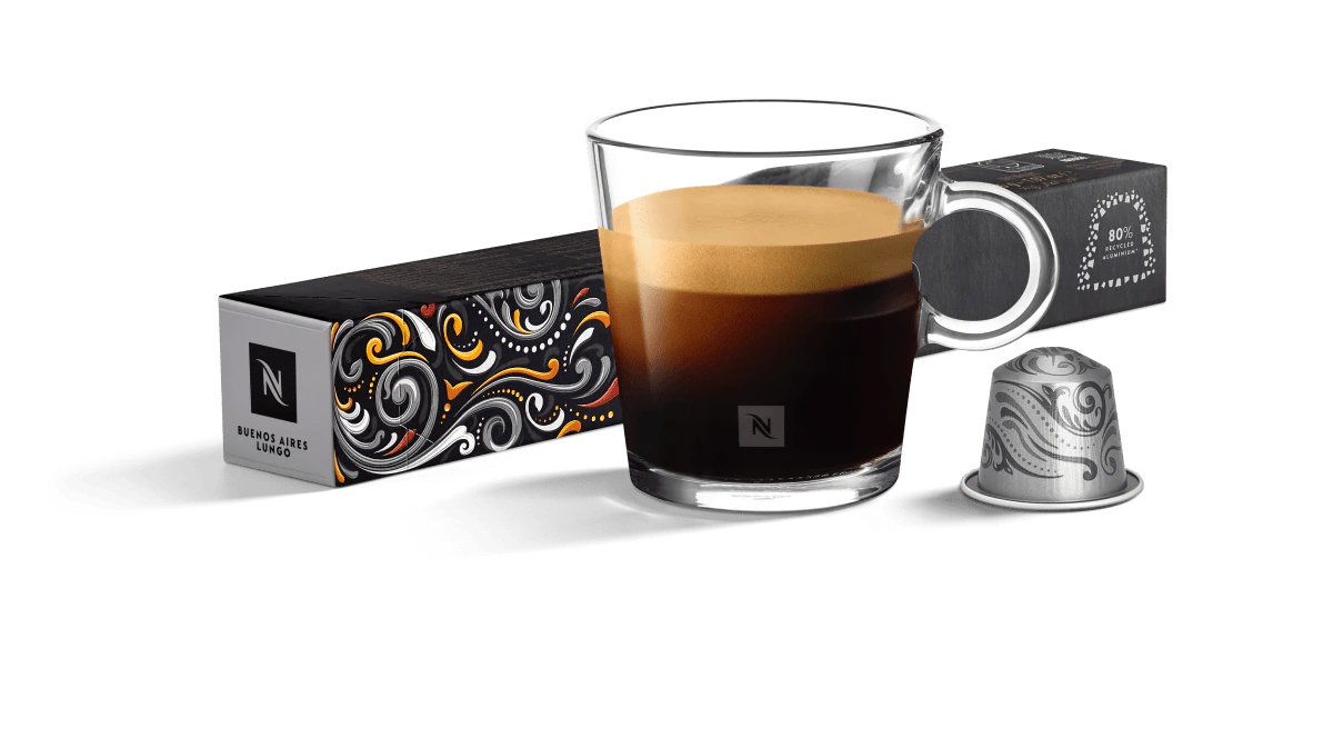 Buenos Aires Lungo is a balanced blend with nutty cereal notes, abundant sweetness and very characteristic pop-corn notes.