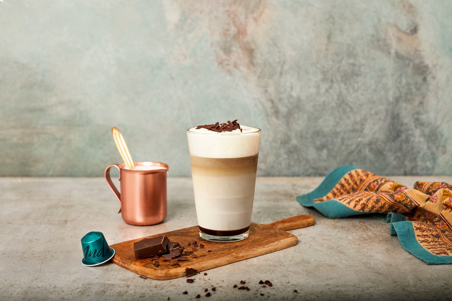 Step into the story of two of Indonesia’s beloved exports in this indulgent caffè mocha.
