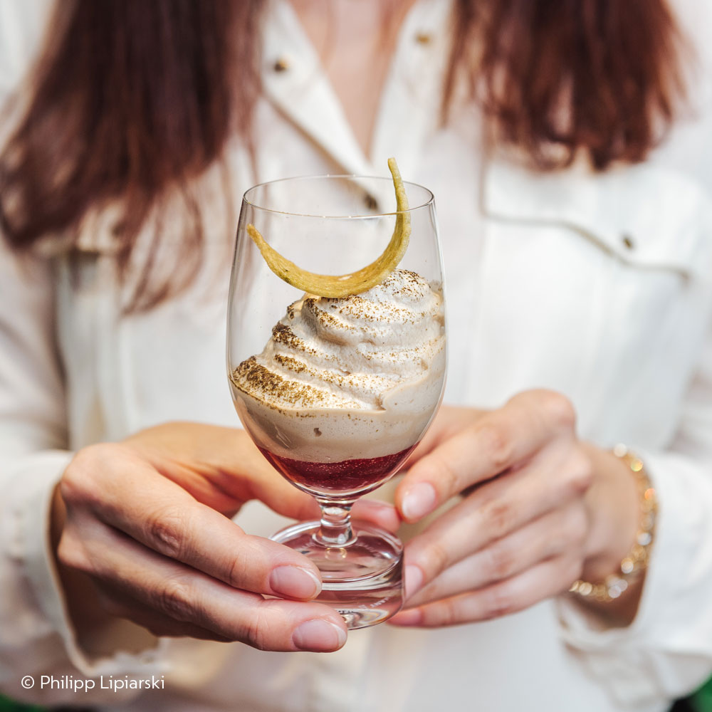 Das im Nespresso Immersive Room zubereitete Dessert enthält folgende allergene Inhaltsstoffe: G (Milch und daraus gewonnene Erzeugnisse – einschließlich Laktose), A (Glutenhaltiges Getreide), C (Eier und daraus gewonnene Erzeugnisse)