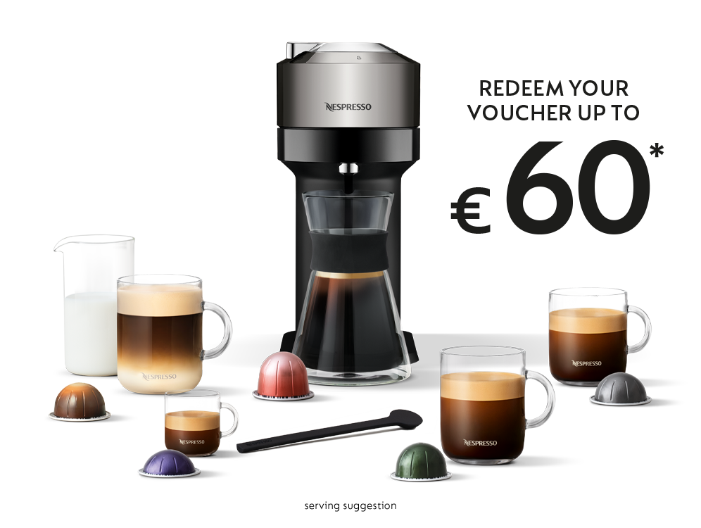 - - a € 40 Nespresso coffee voucher if you buy a machine from the VERTUO system.