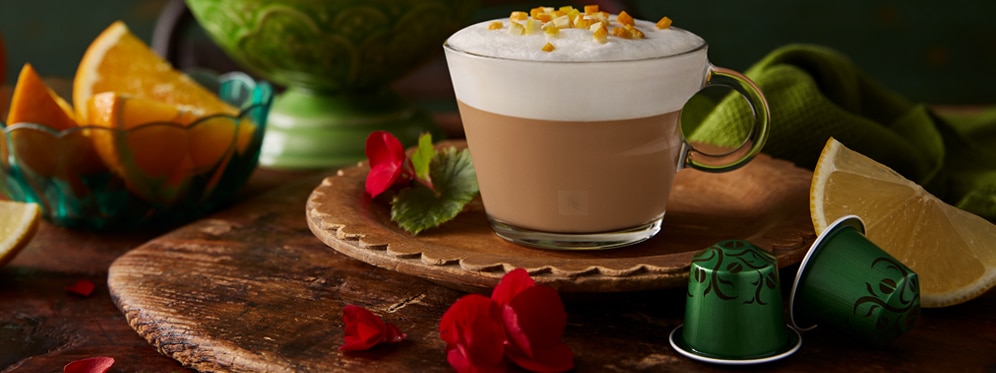 Incorporating marmalade, our Citrus Morning recipe adds a touch of sweetness to complement the intense and rich cocoa notes of the new Robusta Uganda Limited Edition. Garnish with lemon and orange to transform your cappuccino into a wonderful sensory experience.
