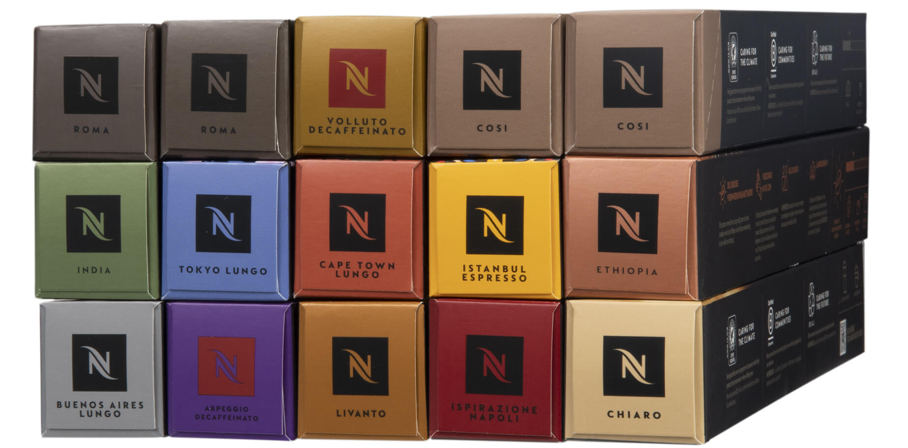 10x Istanbul, 10x Voluto Decaffeinato, 10x Ethiopia, 10x India, 20x Ispirazione Roma & 10x Chiaro.