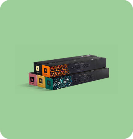 4. L’assortiment de café gratuit de 50 capsules Original a une valeur de €25 et contient : 10 capsules Volluto, 10 capsules Ristretto, 10 capsules World Explorations Stockholm Lungo, 10 capsules World Explorations Vienna Lungo et 10 capsules Caramello. L’assortiment de café sera ajouté automatiquement à votre panier ou à la caisse lorsque vous enregistrez votre machine et à l’achat de minimum 50 capsules Original. Nespresso se réserve le droit de remplacer une variété de café manquante par une autre variété de café similaire en cas de rupture de stock. L’assortiment café gratuit n’est pas valable sur les Packs Original et sur les machines achetées chez Nespresso.