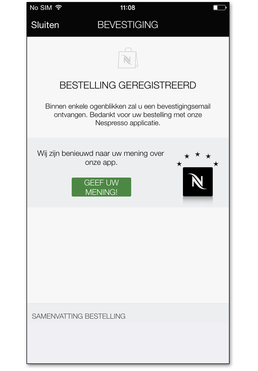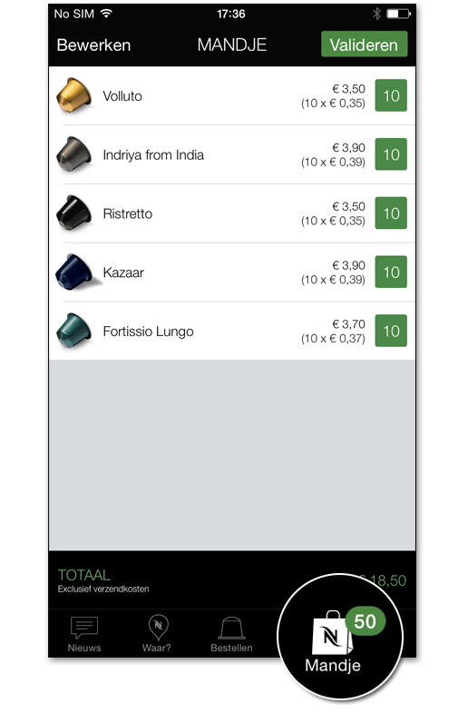 Met de handige Nespresso app bestelt u koffie, machines en accessoires in 4 eenvoudige stappen. Via de app vindt u ook snel een Nespresso Boutique in uw buurt en blijft u steeds op de hoogte van de laatste nieuwtjes en productlanceringen van Nespresso.
