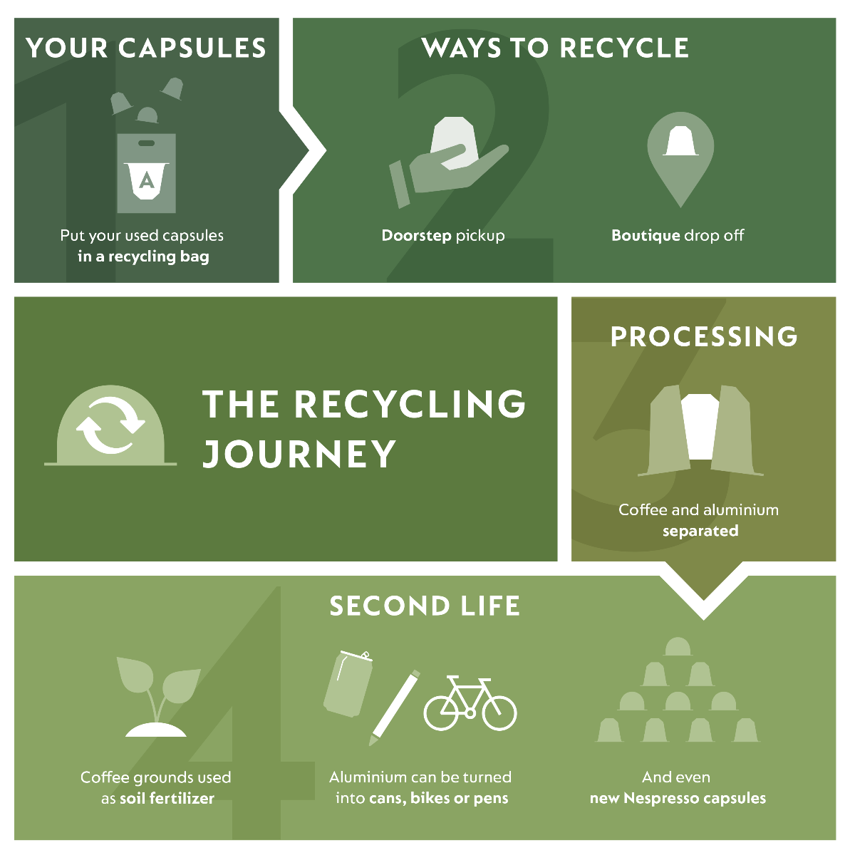 Nespresso works closely with service providers to ensure that capsules collected are recycled. Nespresso's recycling program has been verified by third party auditors and monthly checks are conducted to monitor the volume of recycled capsules.