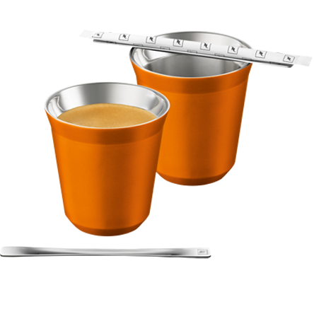 description Set of 2 double-wall Lungo cups (80 ml) in stainless steel matching the Linizio Lungo Grand Cru color, with 2 stirrers (12.5 cm) in stainless steel.