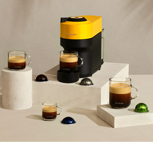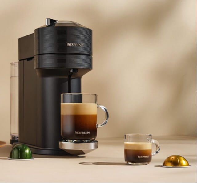 Ahora nos centramos en la máquina Vertuo, la que te ofrece hasta 5 tamaños de taza en su modelo Next, o 4 tamaños en POP y Plus: desde el espresso hasta el carafe, el medio litro de café pensado para tu termo o para reuniones familiares.