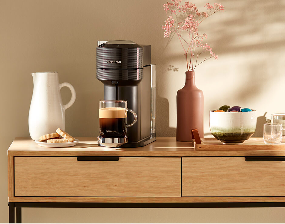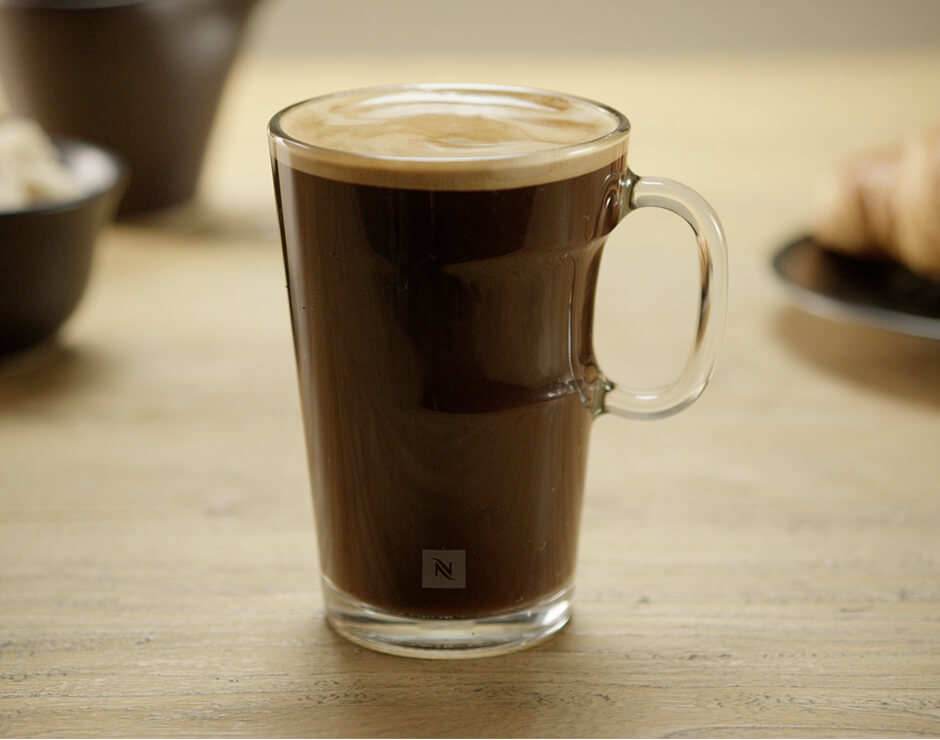 1Prepara tu café americano Nespresso con una cápsula de café Coffee o Barista Creations en tu cafetera Nespresso Vertuo.