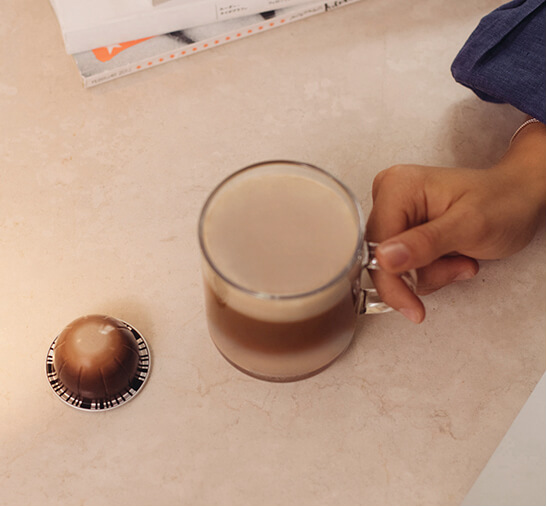 3La proporción perfecta es 50-50 entre agua y café, pero con Vertuo es 100% café. Si te decides a añadir espuma leche, 80-20.