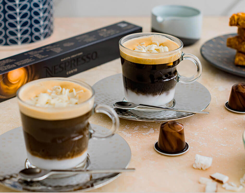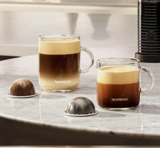 Las mejores opciones, las que permiten captar todos los matices del café bombón, son la Nespresso Vertuo Mug¸una taza de café a lo grande, y la Espresso View, para cafés bombón formato mini.