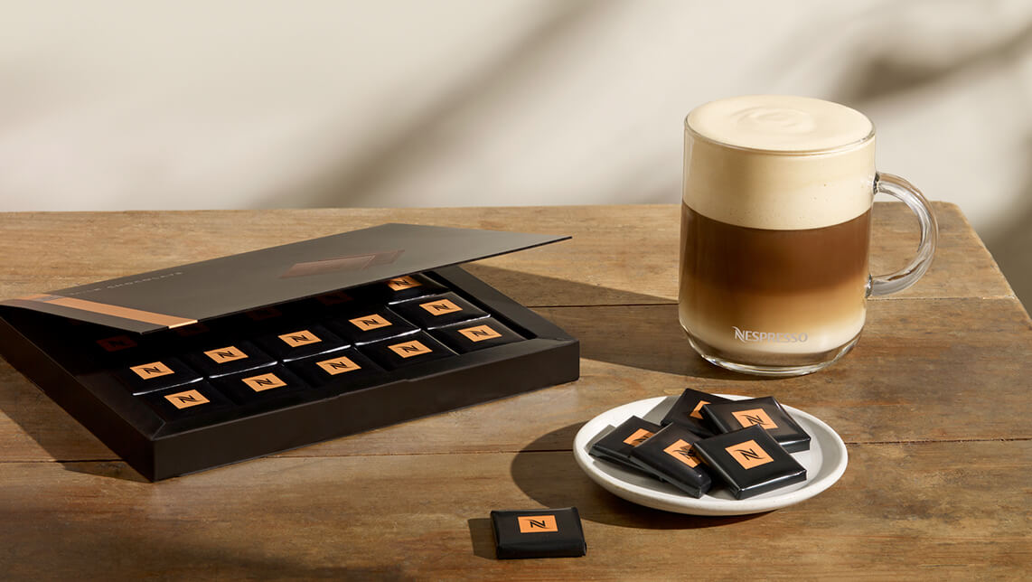 También hemos pensado en si tu media naranja prefiere acompañar al chocolate al café con leche. El chocolate con leche Nespresso, contenido mínimo de cacao un 41%, es el detalle perfecto para esa cita de café con la persona de tu sonrisa. Dos clásicos que nunca fallan: tomar un café y tentar con un bombón.
