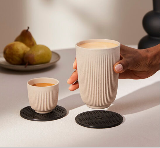 “Menos es más”, también significa producir más usando menos materiales. Por ello nos alineamos con Huskee, compañía con el certificado B Corp, que cuenta con un amplio historial en utilizar cáscaras de café para crear nuevos productos.