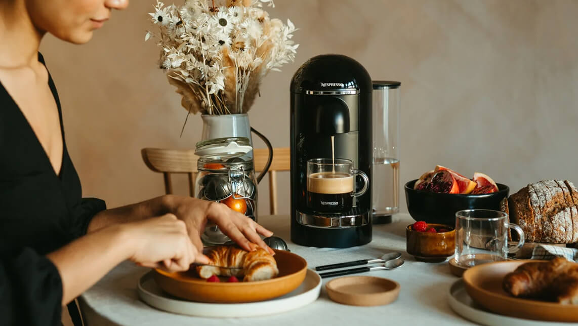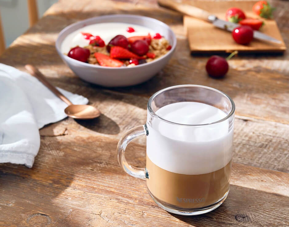 En Nespresso hemos estudiado con detenimiento el momento del desayuno para ofrecerte cafés que superen las expectativas. Aunque hay miles de combinaciones, las hemos reducido a cuatro: desayuno dulce, desayuno salado, desayuno completo y el de solo café. Además, vamos a centrarnos en tipos de cápsulas de café con leche, ese que prefieren 7 de cada 10 españoles y que más se toma a primera hora. Porque unir desayuno y café con leche es un ritual ancestral pero que sigue funcionando décadas después.