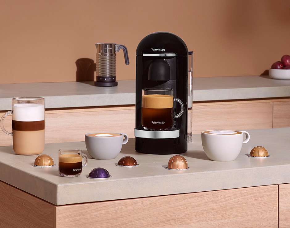 Máquinas Nespresso Vertuo: Estas máquinas utilizan cápsulas de café Vertuo, que son más grandes y están diseñadas para preparar tazas de café según el tamaño y con diferentes perfiles de sabor. Estas cafeteras de cápsulasutilizan una tecnología de centrifugado para extraer el café, lo que resulta en una crema más densa y sin perder la experiencia de café más intensa.