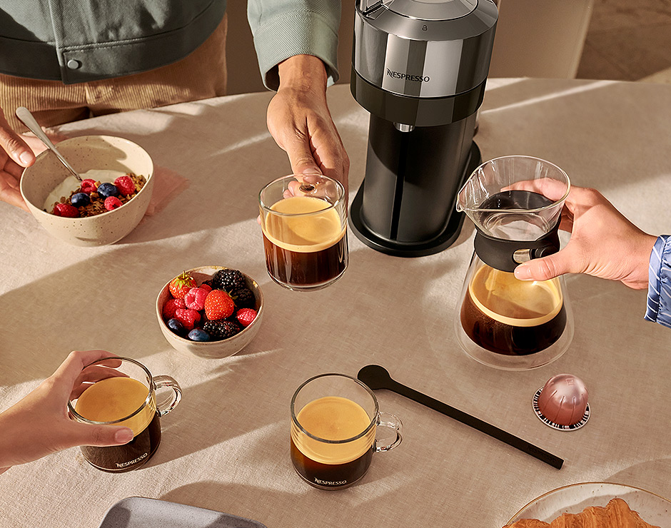 Como una nueva forma de preparar café más largo, Vertuo llegó en 2014 a Estados Unidos y siete años más tarde a España. Versatilidad en tamaños de tazas a través de diferentes cápsulas, una innovación tanto en su versatilidad como en la forma de extraer el café. De hecho, esta nueva forma de extraer café forma parte de la historia sostenible de las cápsulas. Las máquinas Vertuo leen el código de barras integrado en cada cápsula, para prepararlo de forma totalmente personalizada. Así miden el agua y energía necesaria. Ni una chispa o gota de más.
