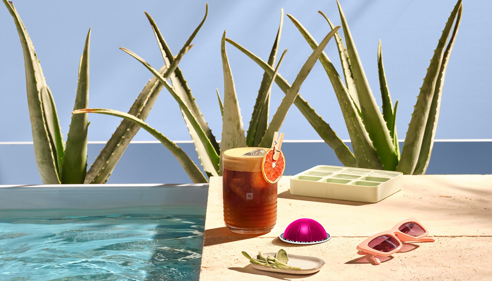 Coloca los hielos en el vaso de recetas para café frío de Nespresso.