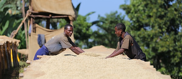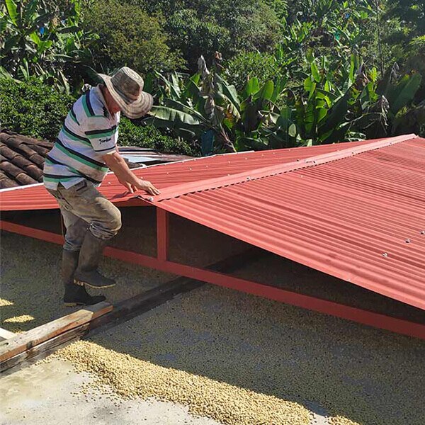 Die Arabica-Bohnen werden ungewaschen für bis zu vier Wochen ausgebreitet und sonnengetrocknet. Damit die Bohnen gleichmäßig trocknen, werden sie von Hand gewendet. Dabei zieht die fruchtige Süße in das Herz der Kaffeebohnen.