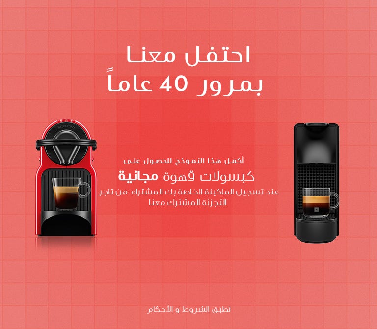 العرض صالح للماكينات التي تم شراؤها من أي من تجار التجزئة المشاركين في شركة نيسبرسو في مصر. اطلع على تقارير T&C.