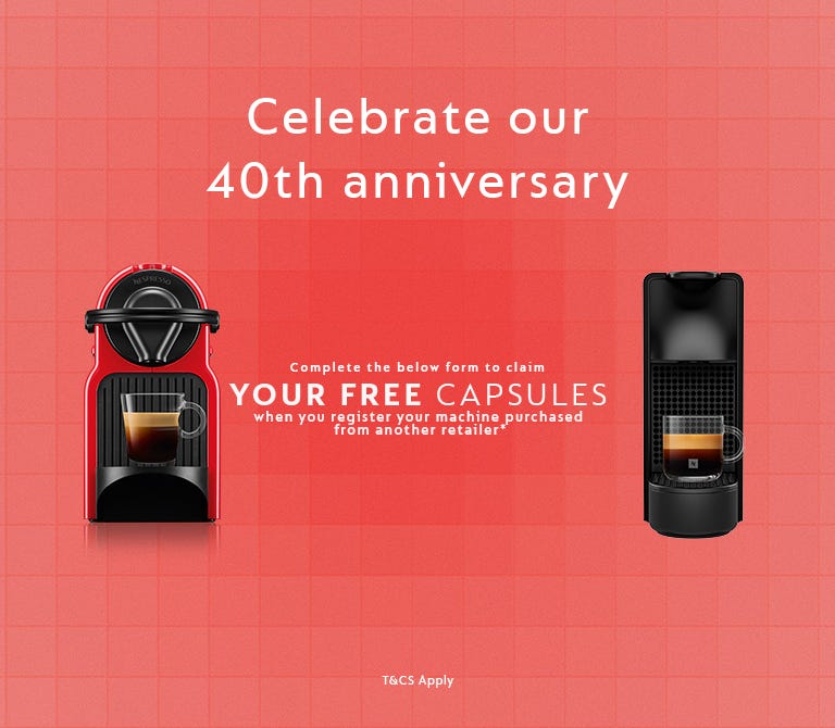 - The offer applies to selected Nespresso coffee machines purchased from Nespresso participating retailers or selected online stores.
