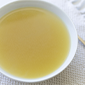 Râper une gousse d’ail dans la poêle utilisée pour cuire le poulet et déglacer avec du bouillon de volaille.