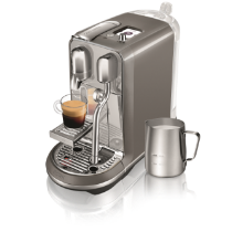 - הסר את מיכל המים והנח את כד החלב הריק מתחת לפתח יציאת הקפה.