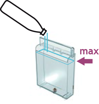 - Rinse the water tank before filling with fresh potable water up to maximum level.