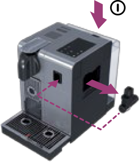 - Press to confirm. The descaling agent flows alternately trough the coffee outlet, hot water nozzle and drip tray.
