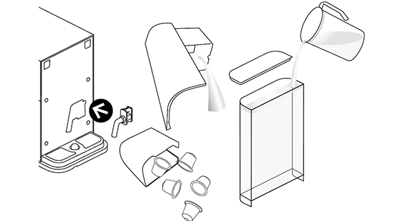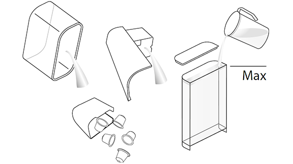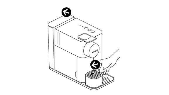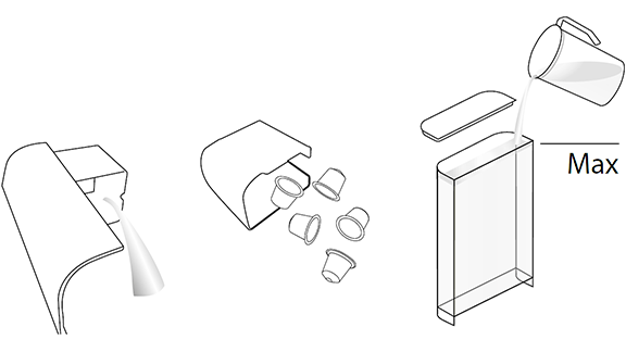 - רוקן את מיכל הקפסולות המשומשות ואת אגן הניקוז, שטוף את מיכל המים ומלא אותו במי שתייה טריים עד למפלס מקסימום.