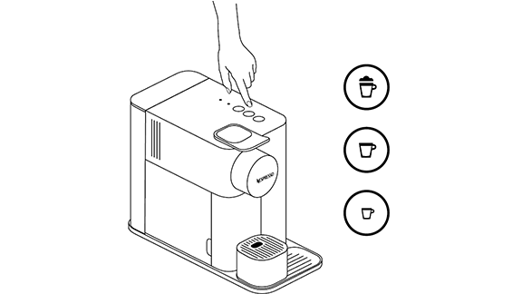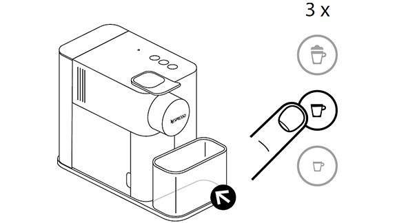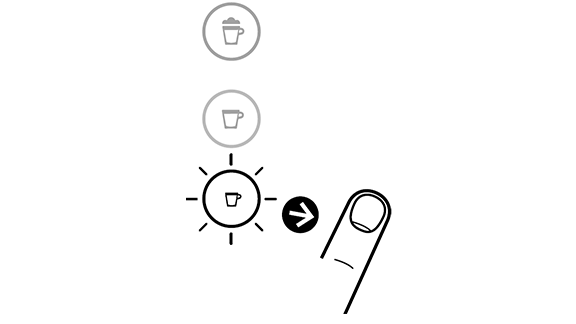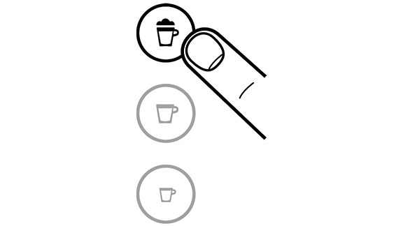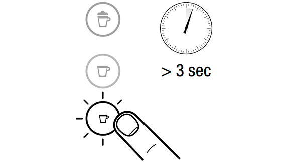 - לחץ והחזק את כפתור האספרסו או הלונגו למשך 3 שניות לפחות כדי להיכנס למצב תכנות. חליטה תתחיל. הנורות יהבהבו מהר: מצב תכנות.