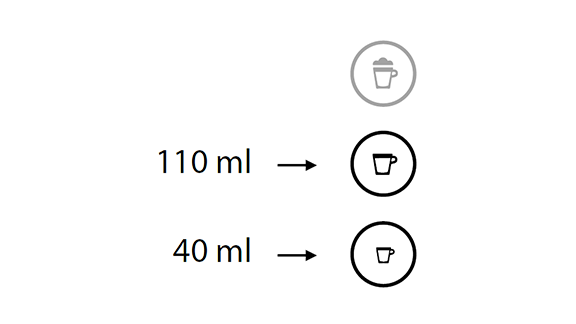 - לחץ על כפתור האספרסו (40 מ"ל) או על כפתור הלונגו(110מ"ל(, ההכנה תסתיים באופן אוטומטי. לעצירת זרימת הקפה או להמשך זרימה לחץ שוב.