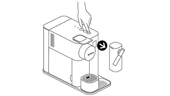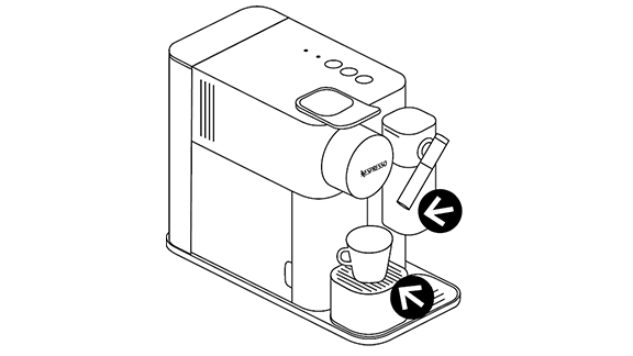 - הנח ספל קפוצ'ינו או כוס גדולה ללאטה מיקאטו תחת פתח יציאת הקפה וכוון את צינורית החלב על ידי הרמה שלה לכיוון הספל.