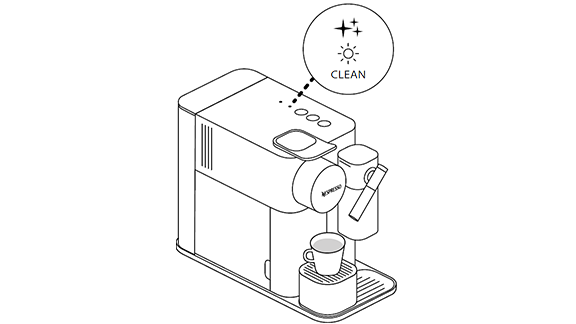 - בסיום ההכנה, התראת הניקוי תואר באור כתום לסימון שיש לבצע ניקוי למערכת החלב.