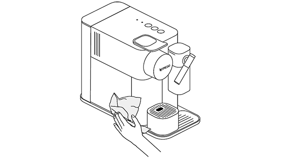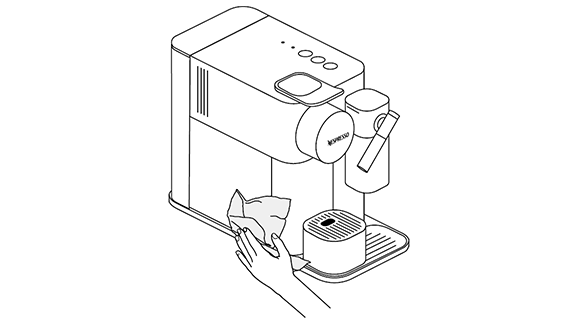 - נקה את פתח יציאת הקפה ואת שטח המכונה עם מטלית לחה ונקייה.
