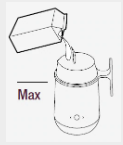 - מלא את הכד לפי הכמות הנדרשת בהוראות המתכון. כדי להימנע מגלישת הנוזל שים לב לסימון ה"מקסימום" המופיע בתוך הכד.