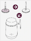- החזר את המכסה למכשיר. וודא כי המכשיר יבש טרם החזרתו לתושבת החשמל. שים לב כי המקצף מונח במקומו לפני הוספת הרכיבים.