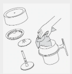 - הסר את עיגול הסיליקון מהמכסה ולאחר מכן את המקצף. פרק את כל החלקים של המקצף על ידי סיבוב עדין של החלק העליון של המקצף על מנת להסירו.