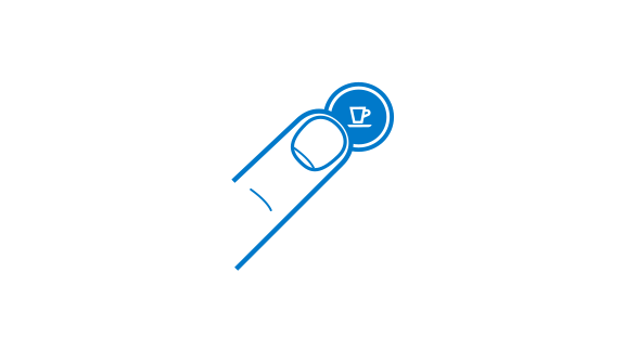 - לחצו על לחצן האספרסו (40 מ”ל) או לחצן הלונגו (110 מ”ל) כדי להתחיל. הקפה יפסיק לזרום באופן אוטומטי. בכדי לעצור את זרימת הקפה לפני יש ללחוץ בשנית על הכפתור.