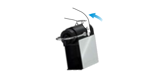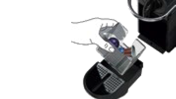 - Take the cup. Lift and close the lever to eject the capsule into the used capsule container.