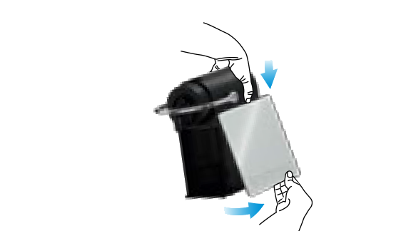 Ensure orientation as indicated per the arrows inside the panel. Start to clip from the top. In case the panel still does not clip, call the Nespresso Club.