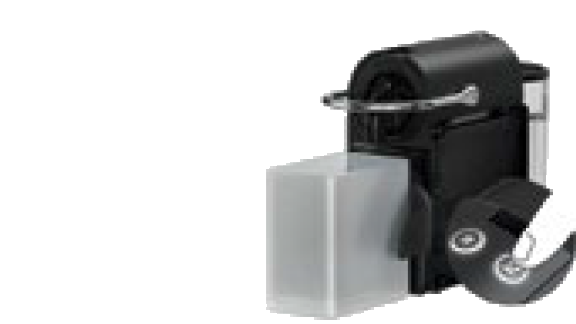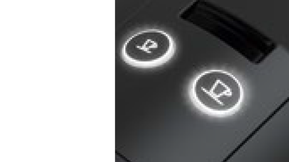 - Switch the machine on. Blinking light of both coffee buttons and the capsule container: heating up for approximately 25 seconds. Steady light: ready.