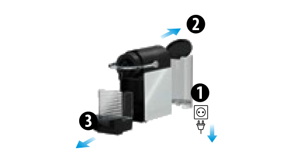 - Remove the water tank and capsule container. Adjust the cable length and store the excess under the machine.