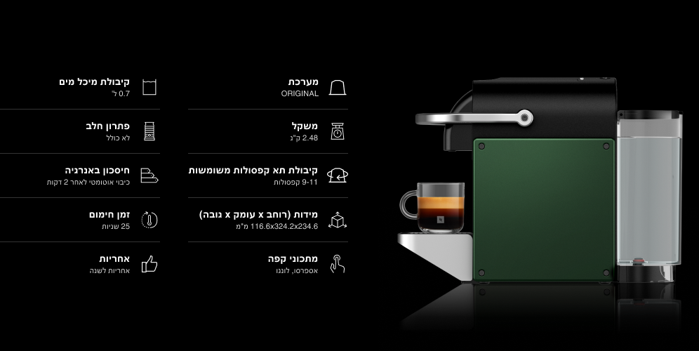 מכונת קפה Pixie בצבע ירוק עמוק