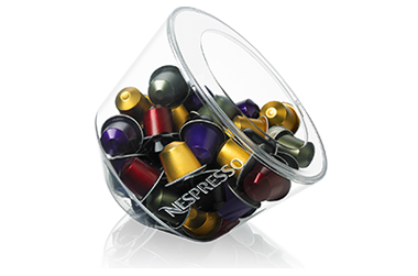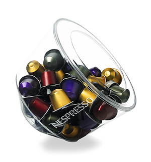 Organize and exhibit your Grands Crus coffee capsules in this classic Bonbonniere dispenser in the form of an iconic Nespresso coffee capsule.