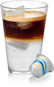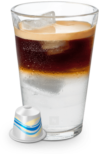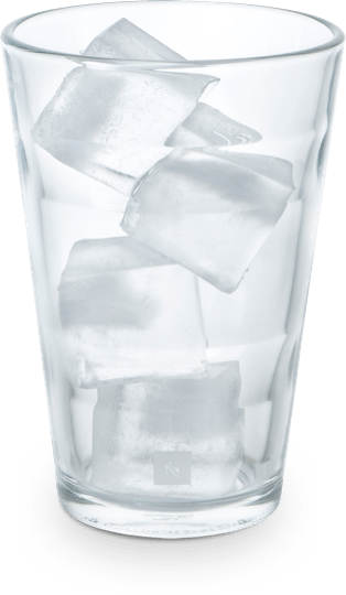 מתכון מוצלם של הכנת קפה קר תוסס - מלאו את ספל הנספרסו שלכם ב-4 קוביות קרח, הוסיפו 120 מ"ל מים מוגזים עדין או מים רגילים, מיזגו 25 מ"ל קפה.