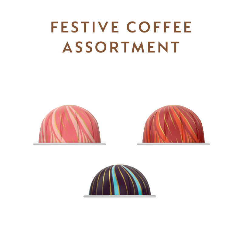 Celebrate the festive season with this joyful assortment of Nespresso Vertuo coffees, featuring one sleeve from each limited-edition festive creation.